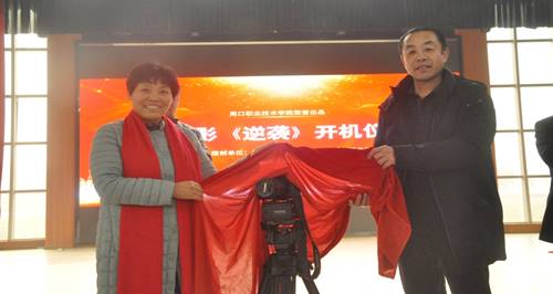 1月8日上午9时,由周口职业技术学院联合周口致青春影视公司联合摄制的励志微电影《逆袭》开机仪式在我校开元校区体育馆隆重举行。