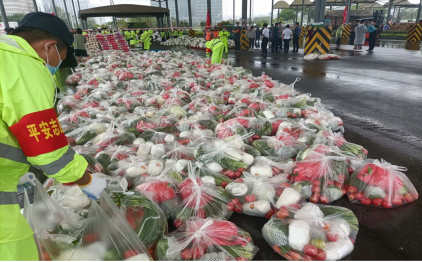 根据工作安排,在江宁区东山街道农副产品物流中心内金地停车公司的带领下,李成、宋云鹏和众多志愿者每天用流水线的方法,为南京遭受疫情而无法出门的市民们进行各类蔬菜打包、消毒、装车、派送,每次蔬菜打包要求重量为20斤左右,这样以便于工作人员和志愿者方便送到市民手中。