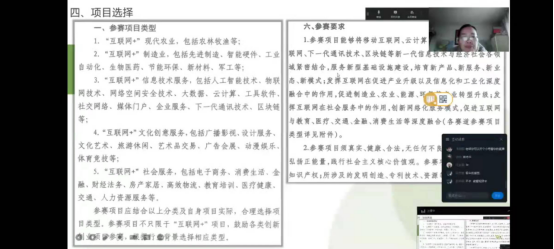 课堂中,刘院长主要为同学们详细讲解大赛文件所涉及的项目类型内容。鼓励同学们在假期时间用创新思维去发现问题,组建项目,开学后积极参与到各种大学生创新创业大赛活动中去。