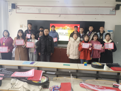 比赛结束后,副院长刘胜杰、学生管理办主任田伟华在多媒体教室分别为获奖学生颁发荣誉证书、奖牌、荣誉证书并合影留念。