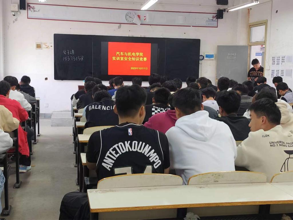 为进一步强化学生实验实训室安全的底线思维和红线意识,培养学生的实验安全理念,让安全意识入心入脑,营造安全的实验环境,从而更好地保障校园安全稳定和师生生命财产安全,根据河南省高校实验室工作研究会《关于开展“河南省高校实验室安全知识大赛”的通知》(豫高实【2023】6号)要求,10月11日下午,院在6243教室举办实验室安全知识大赛大赛主题为“提升实验技防能力,保障师生健康安全”,2023级各班参赛选手参加