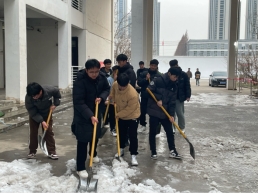 最美下雪天,最暖扫雪人。在学生支部书记的带领下,入党积极分子自觉的投入到扫雪义务劳动中,他们不畏严寒,互相配合,动用各种扫雪工具。在学校主干道内用自己的实际行动,为同学们铲出了一条条安全、放心的开学之路。