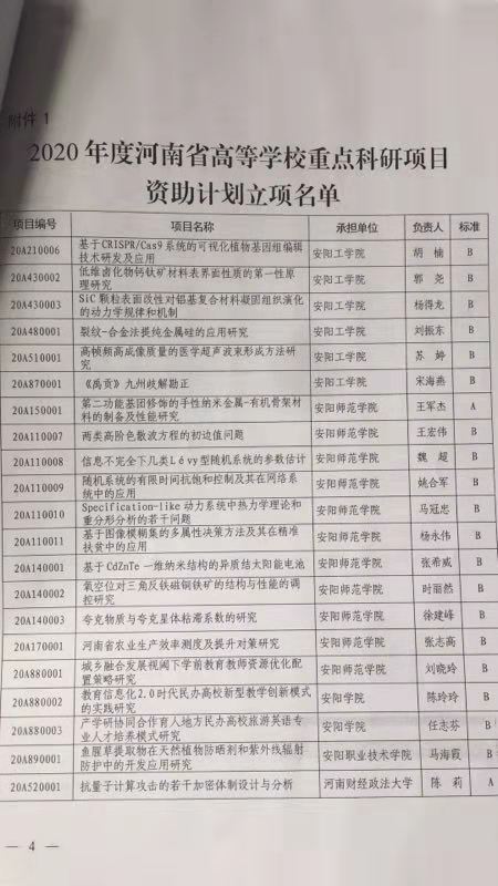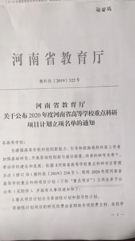 我院教师张昭晗2020年度河南省高等学校重点科研项目计划立项