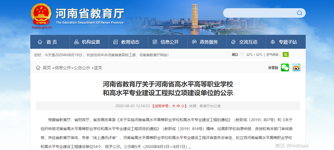 2020年8月3日,河南省教育厅发布《关于河南省高水平高等职业学校和高水平专业建设工程拟立项建设单位的公示》。周口职业技术学院机电一体化技术专业群,成功入选河南省高等职业学校高水平专业群建设工程。