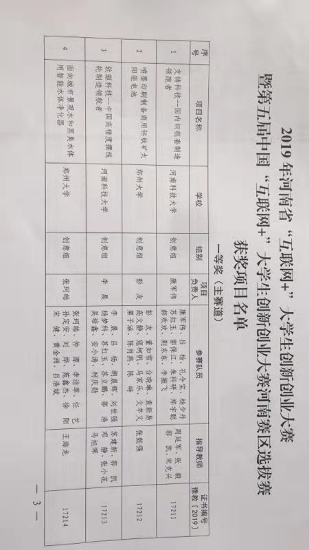 我院学生王鑫阳、齐伟达参加了河南省教育厅2019年7月15日-7月28日举办的2019年河南省“互联网+”大学生创新创业大赛暨第五届中国“互联网+”大学生创新创业大赛河南赛区选拔赛,经学校推荐、网络评审、现场路演、网络公示,获得了两个三等奖的好成绩。通过此次比赛激发了我院大学生创新创业的热情,推动了创新创业教育与专业教育的深度融合,深化了创新创业教育改革,全面提高人才培养质量。
