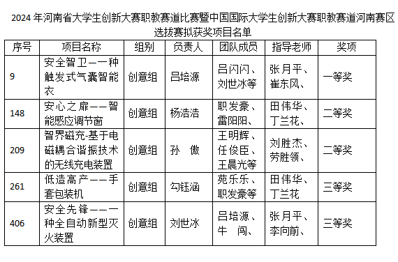 2024年河南省大学生创新大赛职教赛道比赛暨中国国际大学生创新大赛职教赛道河南赛区选拔赛拟获奖名单.xlsx