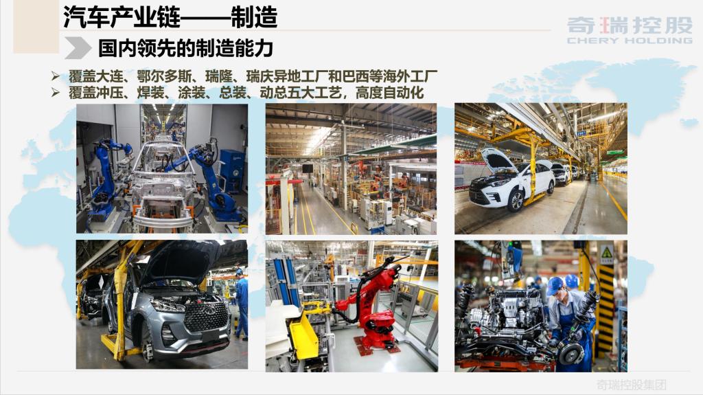奇瑞控股集团有限公司以汽车产业为核心,向上下游产业延伸,实现多元化、集团化发展。集团旗下现有汽车、汽车零部件、汽车金融、地产(汽车露营)、造船、现代服务等七大业务板块。