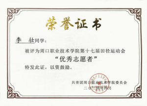 2024年周口职业技术学院第十七届田径运动会优秀志愿者