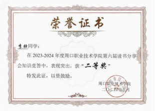 2023-2024年度周口职业技术学院第六届读书分享会知识竞答赛二等奖