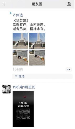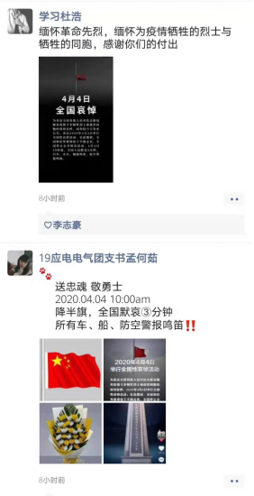 清明节期间,广大青年学生响应团总支要求,通过网络祭祀、观看微视频,学红色英雄、听红色故事,进一步缅怀革命烈士的先进事迹,从而树立敬英雄、学英雄、做英雄的崇高信念,努力把红色精神代代传,做一名合格的新时代大学生。