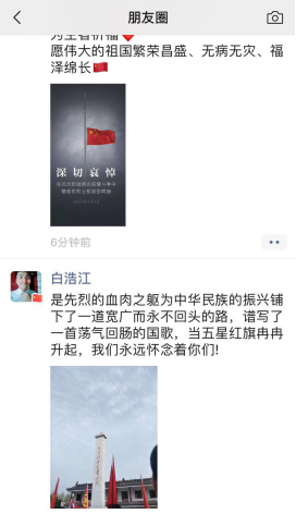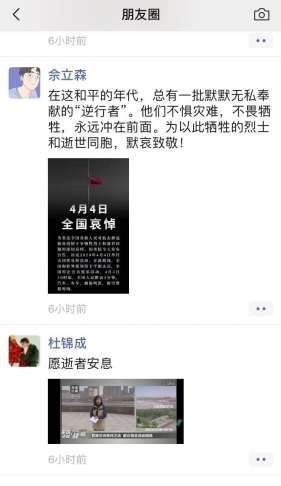 上午10时整,防空警报鸣响,广大青年学生不论在何地都纷纷站在原地,低着头默哀三分钟,对在抗击新冠肺炎疫情斗争中牺牲的医护人员和逝世同胞表达深切的哀悼。