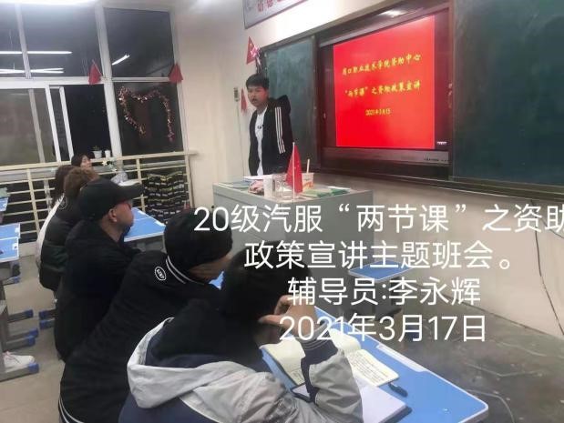 为让广大学生了解和掌握国家资助政策,2021年3月8日-3月12日,按照学校学生处要求我院组织学生召开“奋进新时代,周职周周讲”第四十六期——“资助政策宣讲”主题班会。