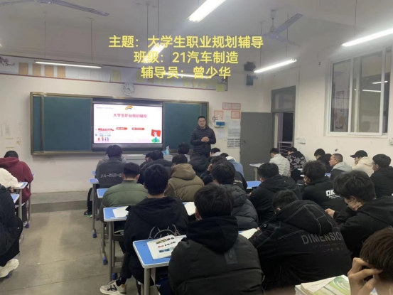 班会期间辅导员们向大家解读了大学生职业规划的意义:自己所学专业方向定位、认识自我、发现属于自己的职业和机会;职业规划的核心与方向:一个核心(我是谁)、三个努力方向(目标分析、生涯计划、生涯行动)。