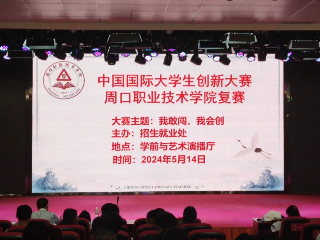 为进一步深化高等学校创新创业教育改革,营造大众创业、万众创新的浓厚氛围,2024年5月14日下午我院积极参加周口职业技术学院在学艺演播厅召开的大学生创新创业大赛复赛。