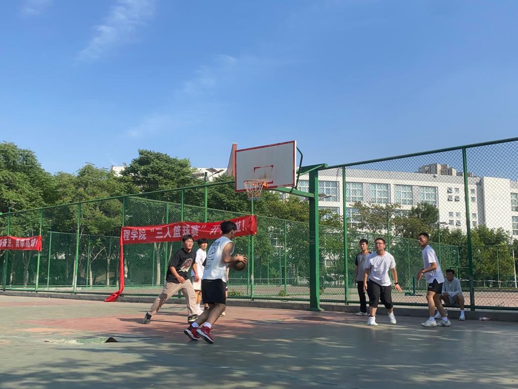 篮球场上正在进行比赛的队伍,认真比赛,挥洒汗水,巧妙抢断,精准投射,以高超的球艺和精彩的配合赢得了在场观众们的阵阵喝彩。整场比赛紧张热烈,运动员用汗水和激情表达了对运动、对生活的热爱,展现了“友谊第一、比赛第二”的体育竞技精神,也展示了我院学子顽强拼搏、奋发向上的精神面貌。