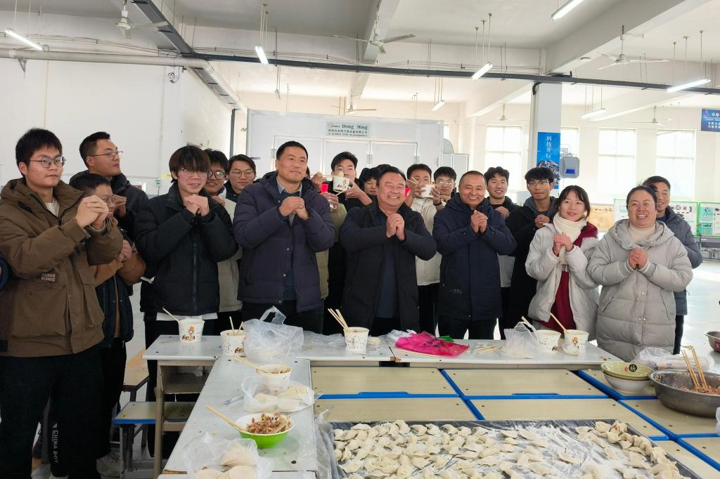 热气腾腾的饺子出锅后,师生们围坐在一起,共同品尝着自己的劳动成果。大家一边吃着美味的饺子,一边分享着节日的喜悦与校园生活的点滴感悟。同时,院长李向前携在场师生发表冬至祝福词。此刻,老师与学生之间那道分明的界限悄然隐去,只有浓浓的情谊在空气中流淌。