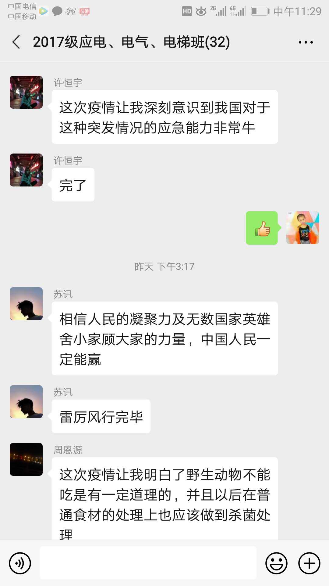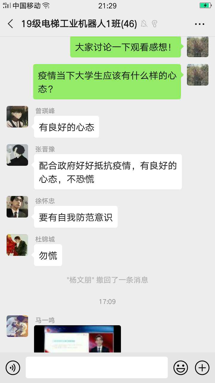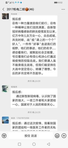 公开课结束之后,广大学生反响强烈,大家一致认为:作为新时代的中国青年,应该有责任与担当。作为新时代的大学生和社会主义的接班人,我们要学习疫情期间广大白衣战士处变不惊、舍己为人的精神,同时,我们要树立正确的世界观、人生观和价值观,深刻认识中国共产党领导和中国特色社会主义制度的显著优势,自觉传承和弘扬爱国主义精神,并将之转化为拼搏奋斗的思想和行为自觉。