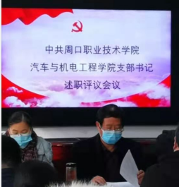 会议首先由学生支部书记田伟华从政治素质方面、学生支部建设方面、学生管理方面、团总支建设、学生大赛方面和文体活动方面进行了述职汇报。随后院党总支书记、教职工支部书记崔东风从样板支部建设、政治学习、教职工党员培养和发展情况、党建活动、学生管理、教师技能大赛等方面进行了述职汇报。