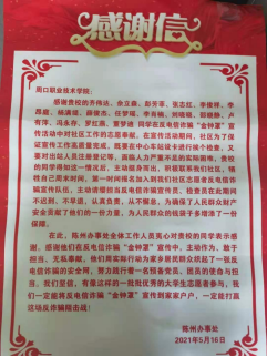 本次高校携手街道办,共筑全民反诈“防护墙”,不仅宣传了电信诈骗的危害性和严峻性,更进一步弘扬志愿者精神,展现了我校大学生风采和良好的精神风貌。