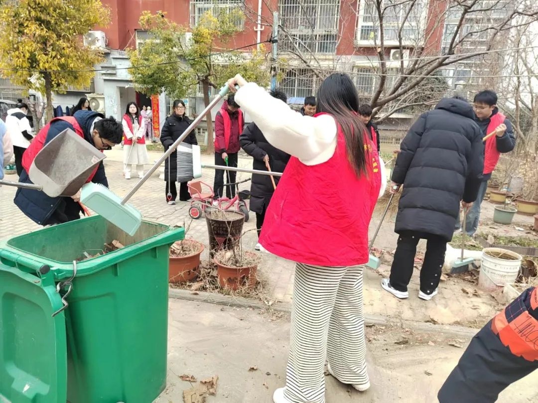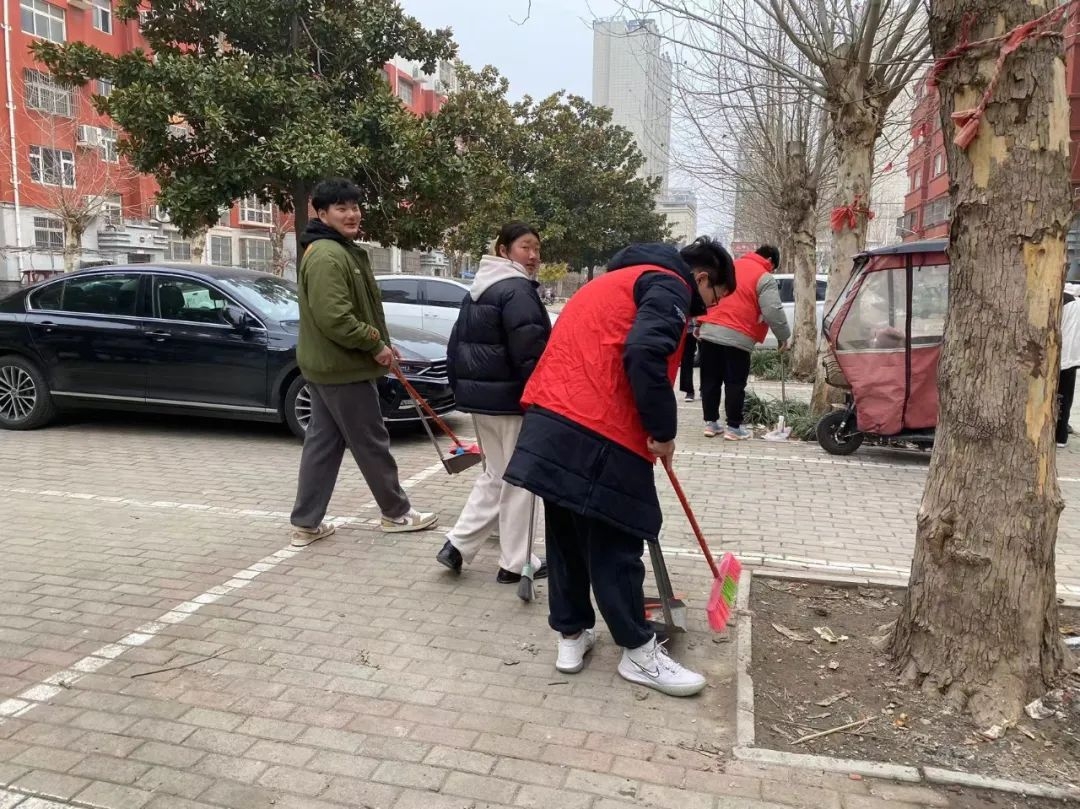 活动中,我院团员干部身穿红马甲,化身“清洁员”,来到社区进行环境美化大扫除,对该社区街面上的生活垃圾、人行道落叶、楼道废物、卫生死角以及社区外道路上的垃圾进行全面清扫。